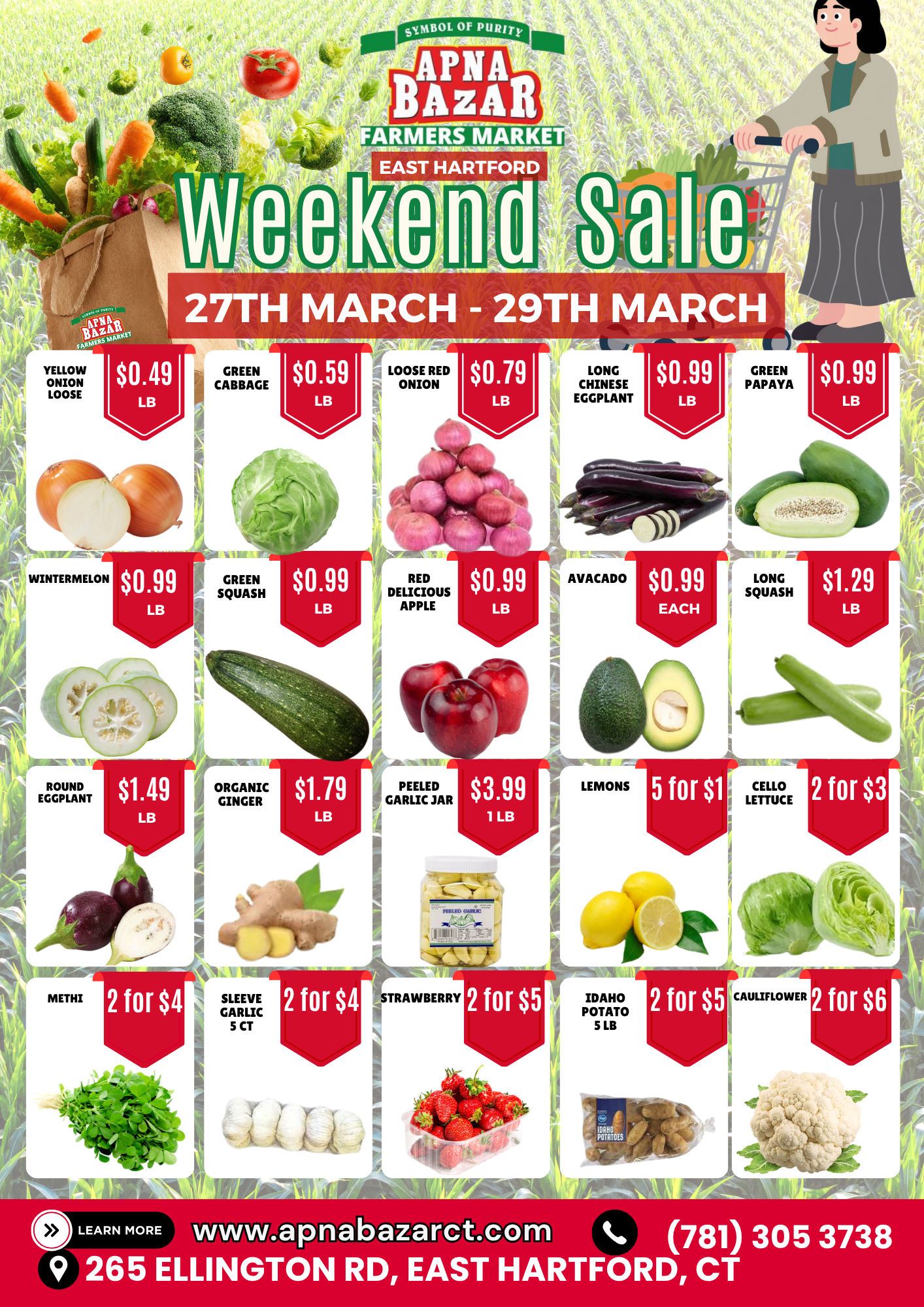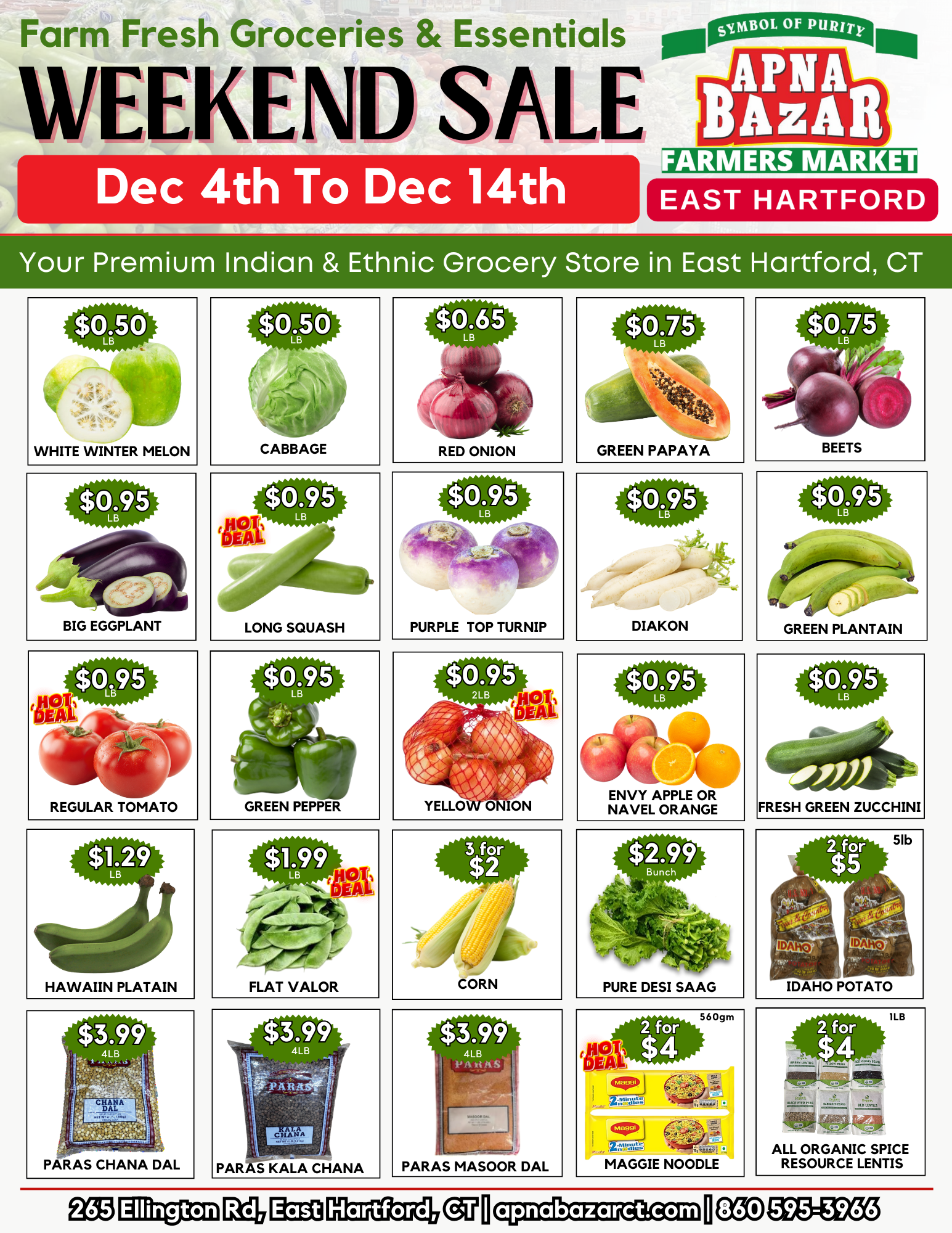 This weekend only at Apna Bazar, dive into spectacular savings with our exclusive promotion! Enjoy unbeatable deals across our entire range of Indian and ethnic groceries. From spices to sweets, stock up on your favorites at discounted prices. Don't miss out—visit us in East Hartford , CT, for these fantastic offers!
