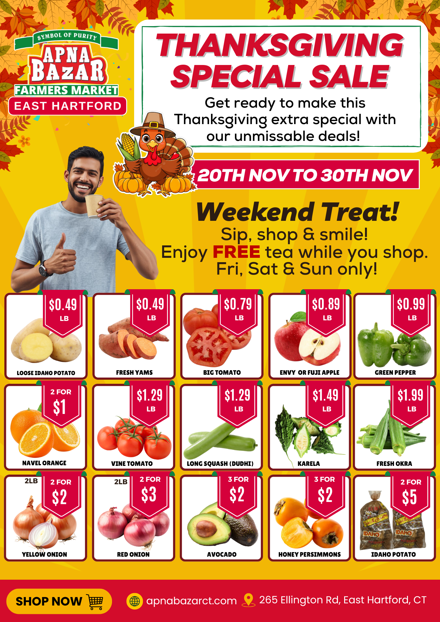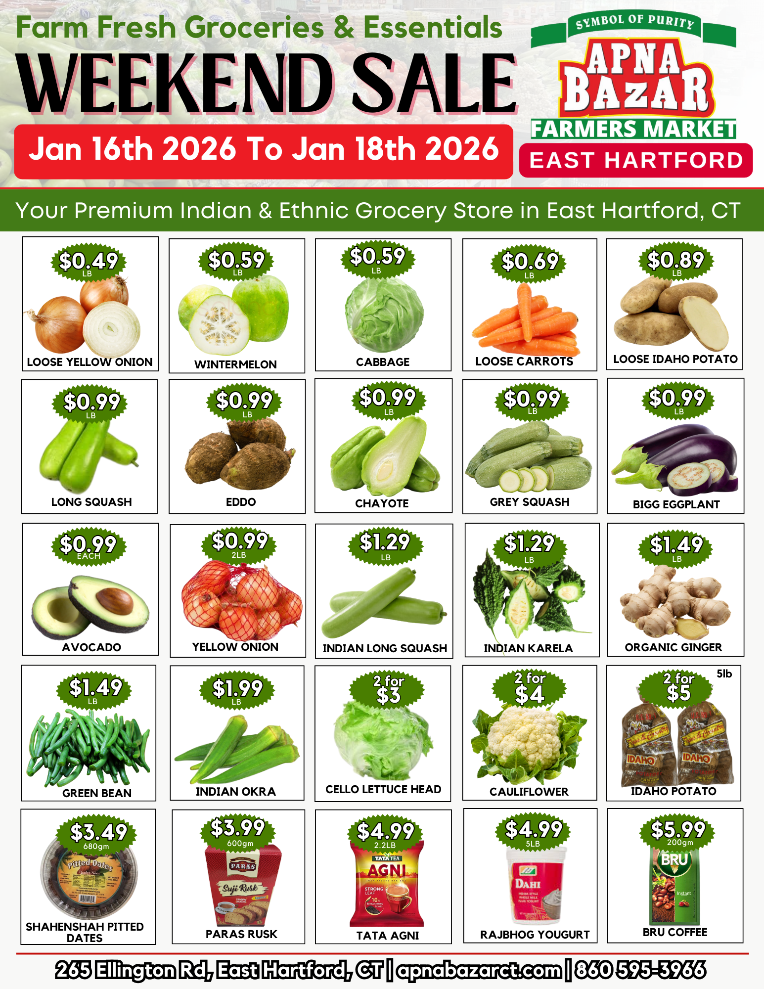 This weekend only at Apna Bazar, dive into spectacular savings with our exclusive promotion! Enjoy unbeatable deals across our entire range of Indian and ethnic groceries. From spices to sweets, stock up on your favorites at discounted prices. Don't miss out—visit us in East Hartford , CT, for these fantastic offers!